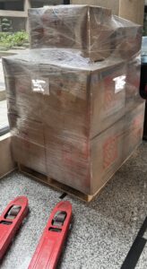 所有箱子整齊地堆上棧板,再用工業膠膜層層包覆得像「木乃伊」一樣,這就代表——它們正式踏上回家的旅程!